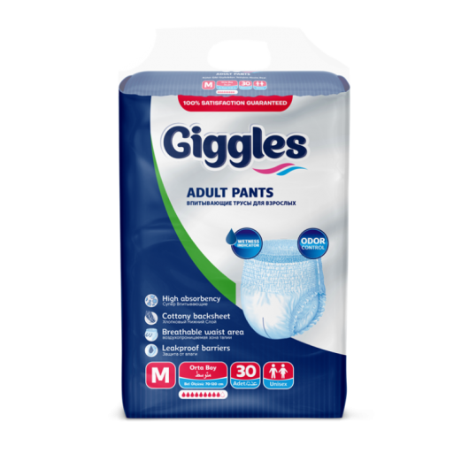 GİGGLES EMİCİ KÜLOTLU HASTA BEZİ 30'LU MEDİUM KOLİ İÇERİĞİ 4'LÜ PAKET